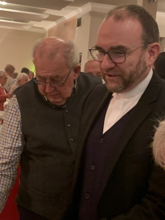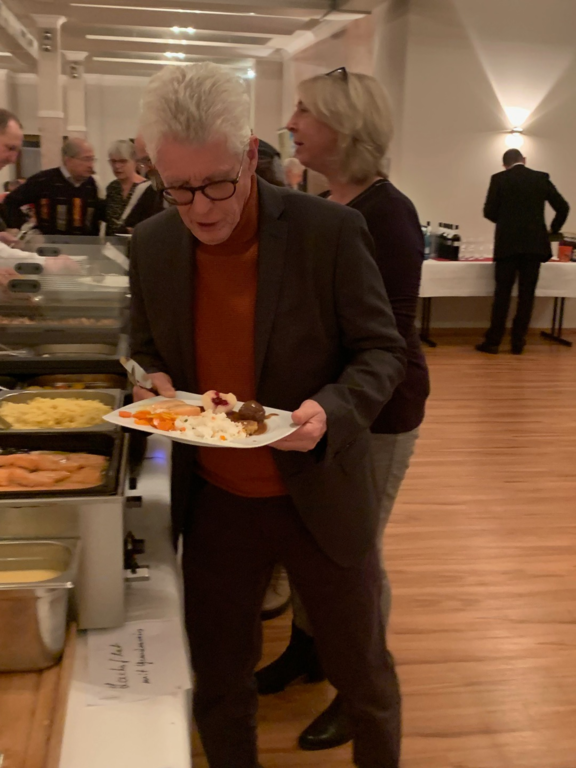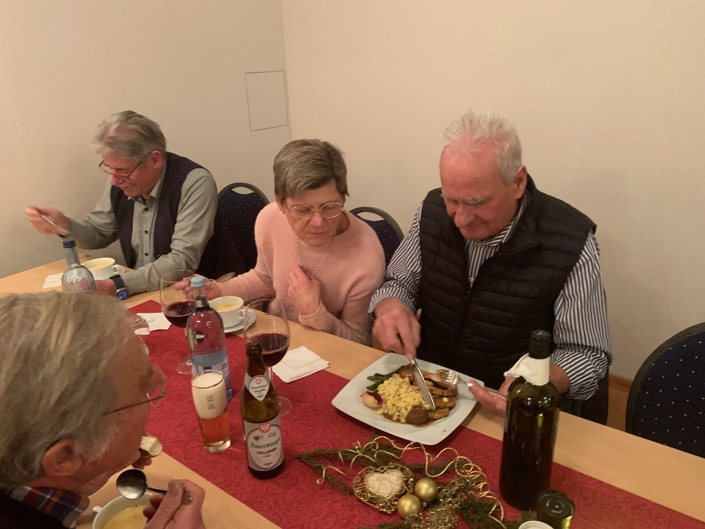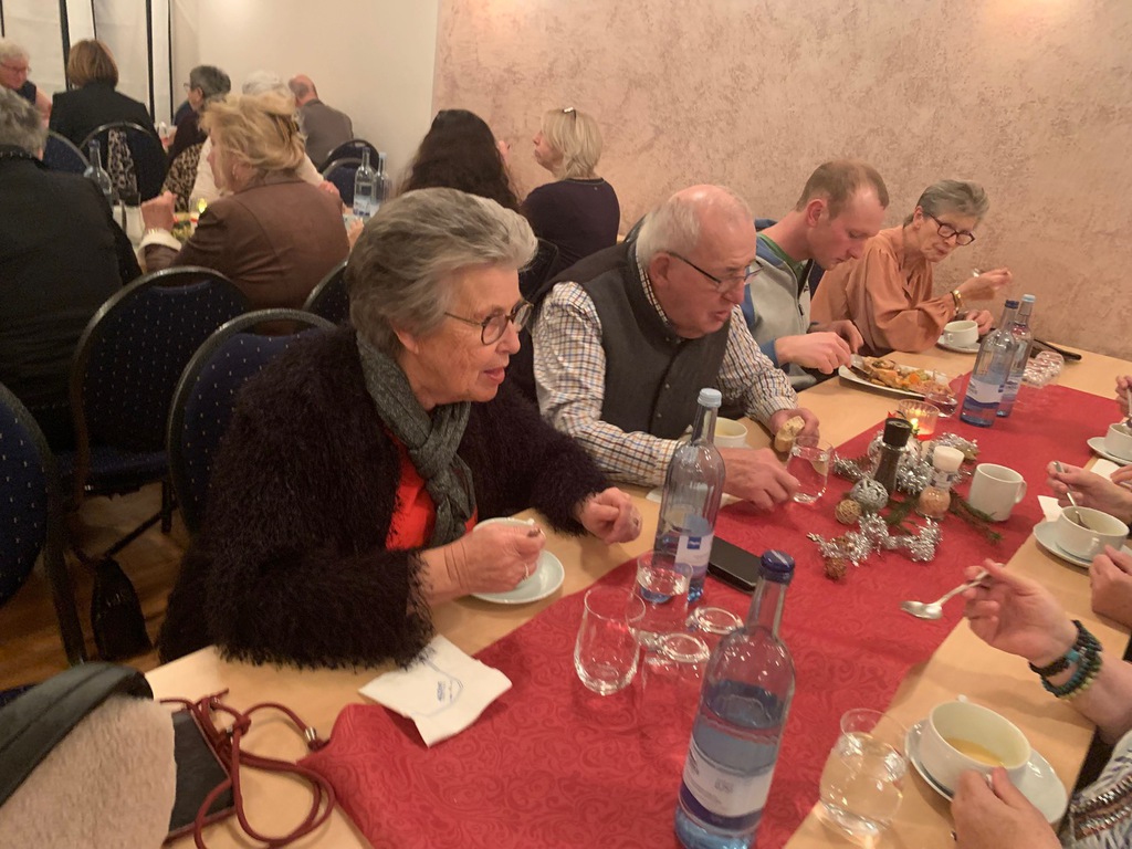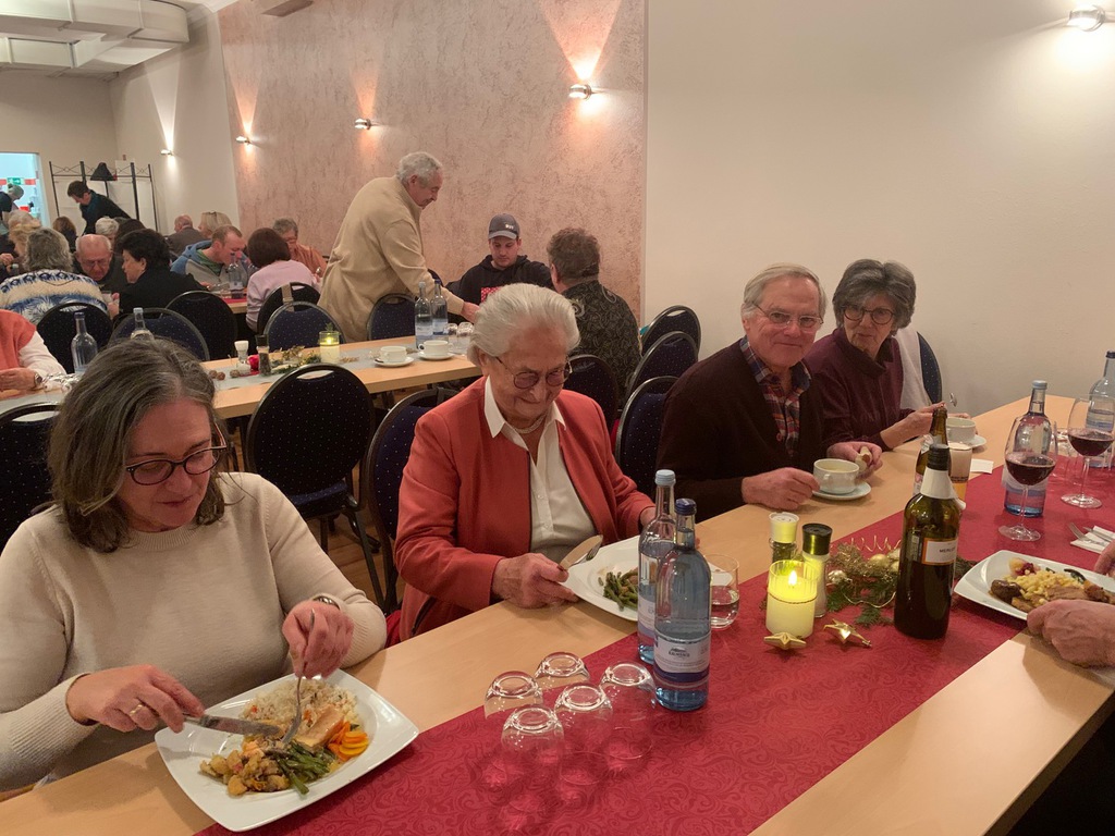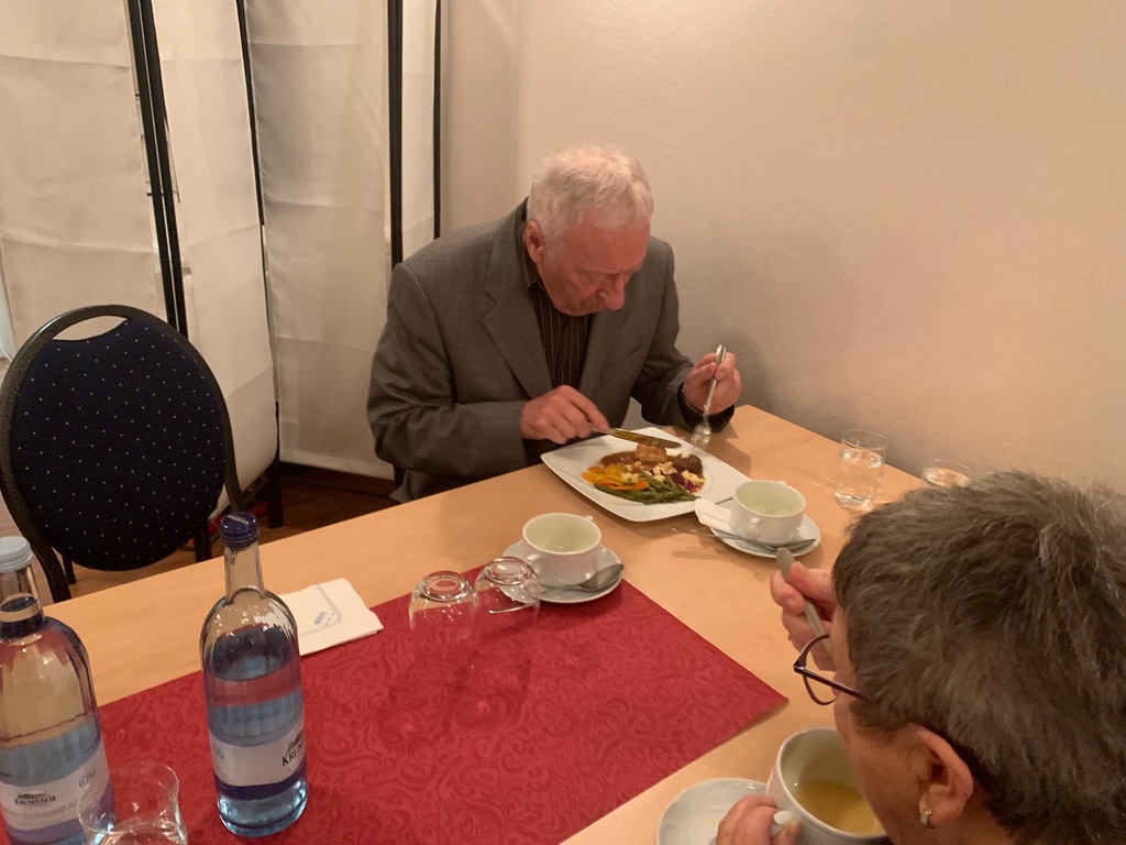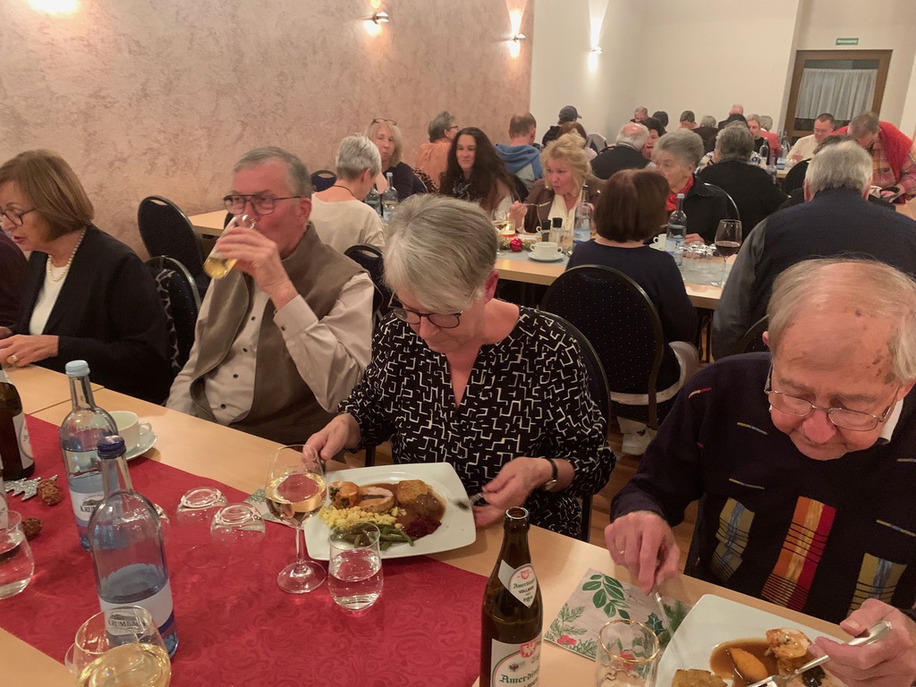 Nach dem festlichen Gottesdienst zogen die Teilnehmer in den Bräuhaussaal des Akzenthotel-Restaurant-Kino Meerfräulein. Dort erwartete sie ein gemeinsames Abendessen in geselliger Atmosphäre. Die Veranstaltung wurde vom Vorstand des Clubs der Köche Donau-Ries – Josef Meyer, Sebastian Dunzinger, David Huse, Gertrud Perlich und Ruth Klinger, sowie den Ehrenvorsitzenden Sepp Meyer und Uli Großmann – mit viel Liebe zum Detail organisiert, zubereitet und vom Team des Hotels professionell serviert.
