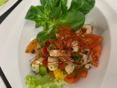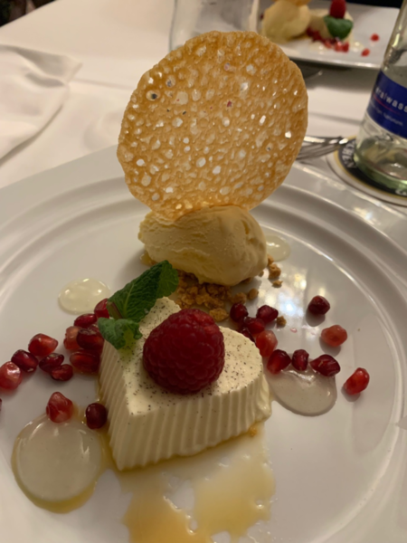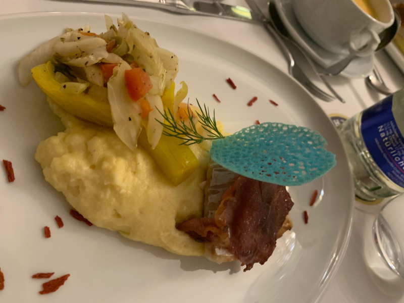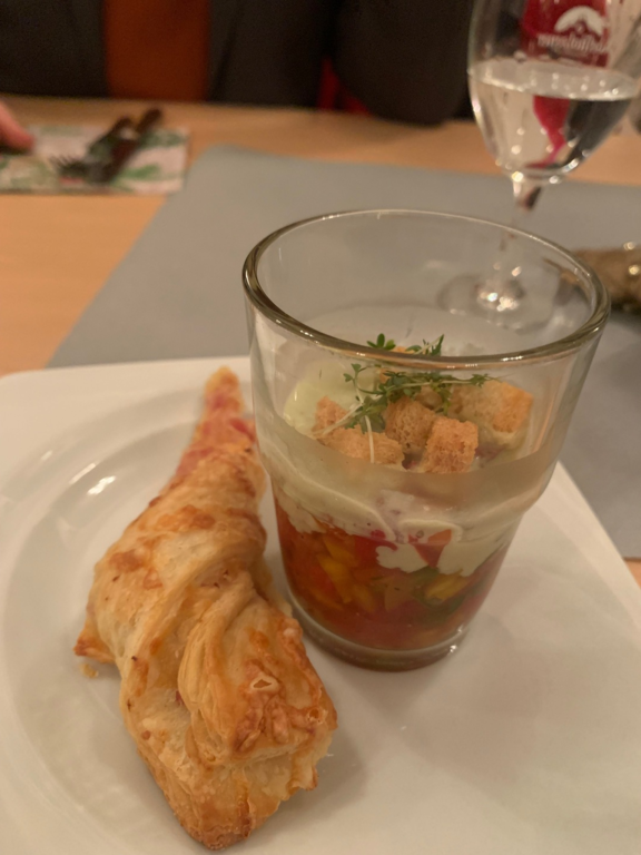 Den Auftakt bildete ein delikates Amuse Bouche, gefolgt von einer cremigen Kürbissuppe mit Kernöl und Croutons, die perfekt zur Jahreszeit passte. Als Hauptgang wurde eine knusprig gebratene Jungmast-Ente mit Apfelblaukraut, Kartoffelknödeln und Eierspätzle serviert – klassisch, aromatisch und bis ins Detail liebevoll zubereitet. Den süßen Abschluss bildeten Buchteln mit hausgemachtem Pfirsich-Sorbet und Vanilleschaum, die den Abend genussvoll abrundeten.